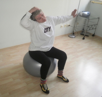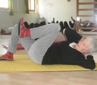Početni položaj, osoba leži na leđima sa nogama savinutim u kojenima i u kukovima, uz duboki udisaj obuhvatite rukama koljeno, privučete ga prsima, zategnete stopalo te idete bradom prema koljenu, uz duboki izdisaj vratite u početni položaj.